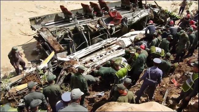لقي 12 شخص مصرعهم، في ما أصيب العشرات بجروح خطيرة، في حادث انقلاب حافلة لنقل المسافرين في الساعات الأولى من صبيحة اليوم الثلاثاء، بأحد منعرجات “طابوكا”، بالطريقة الوطنية الرابطة بين أكادير والصويرة.