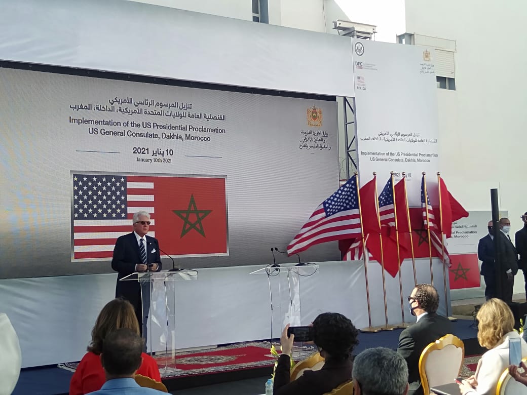 قال سفير الولايات المتحدة الأمريكية بالمغرب في كلمة له صباح اليوم بمقر القنصلية العامة الأمريكية بجهة الداخلة وادي الذهب، بأنه سع جدا بإعتراف بلاده بسيادة المملكة على كافة أراضيها .