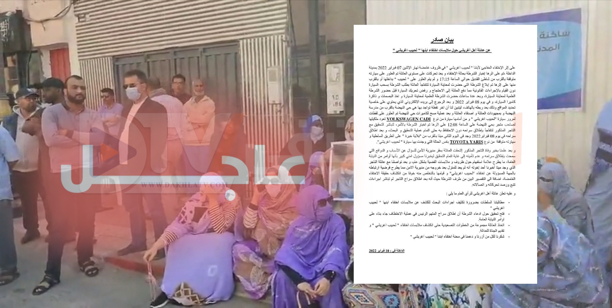 عاجل:عائلة المختفي “لحبيب أغريشي” تصدر بيان للرأي العام و تطالب بفتح تحقيق في قضية اطلاق سراح المتهم الرئيسي إدارة الموقع 10 فبراير 2022 الساعة 17 و 47 دقيقة شارك FacebookWhatsAppTwitterالبريد الإلكترونيLinkedinطباعةTelegram