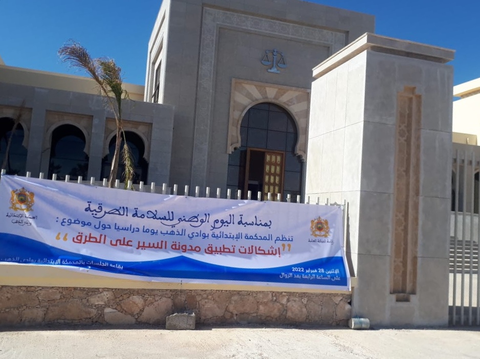 بمناسبة اليوم الوطني للسلامة الطرقية، المحكمة الإبتدائية لوادي الذهب تنظم يوما دراسيا يوم غد الإثنين