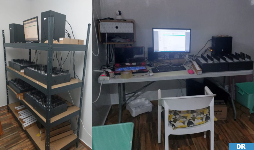 وقد أسفرت عمليات التفتيش داخل منزل يستغله المشتبه فيهم عن حجز مجموعة من الحواسيب الثابتة والمحمولة، وكميات كبيرة من الشرائح الهاتفية، إلى جانب أجهزة إلكترونية سلكية ولاسلكية ومعدات معلوماتية تُستخدم في هذا النشاط الإجرامي.